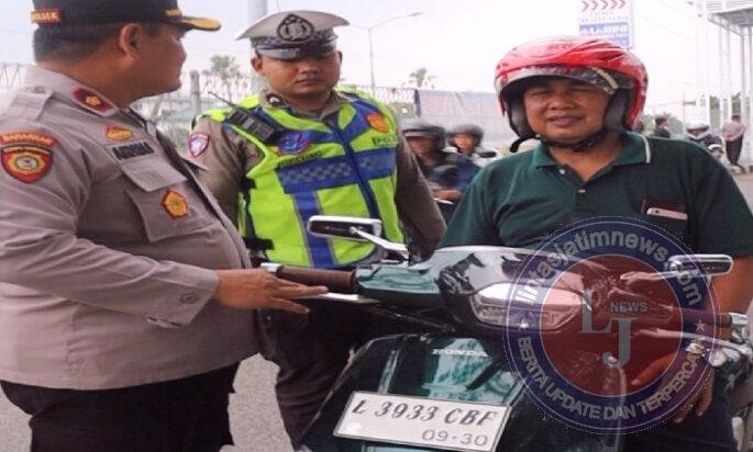 Selama operasi berlangsung, petugas melakukan pemeriksaan intensif terhadap kelengkapan surat-surat kendaraan dan barang bawaan pengendara roda dua.