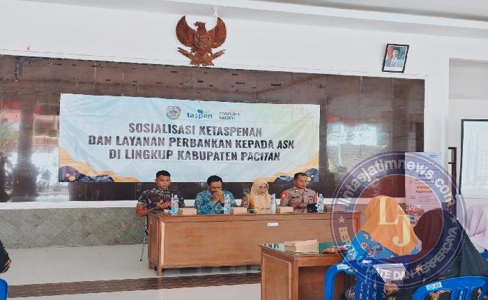 PACITAN lintasjatimnews – PT. Bank Mandiri Taspen mengadakan sosialisasi tentang Ketaspen (Kartu Peserta Taspen) dan layanan perbankan khusus ASN dan pensiunan di lingkup kecamatan Bandar, bertempat di Balai Pendopo Kecamatan Bandar, Kabupaten Pacitan, Kamis (8/1/2026).