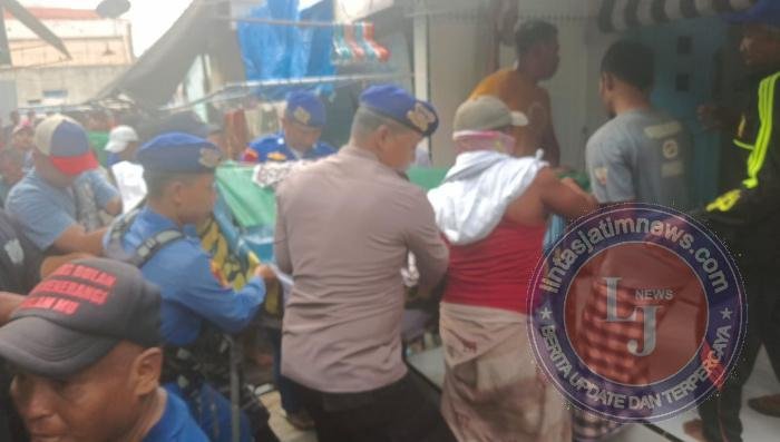 Korban kemudian dievakuasi ke daratan sebelum kejadian itu dilaporkan kepada pihak kepolisian. Selain Mujiyono, saksi lain yang berada di lokasi adalah Udin (44), nelayan yang juga berdomisili di Kelurahan Lumpur, Gresik.