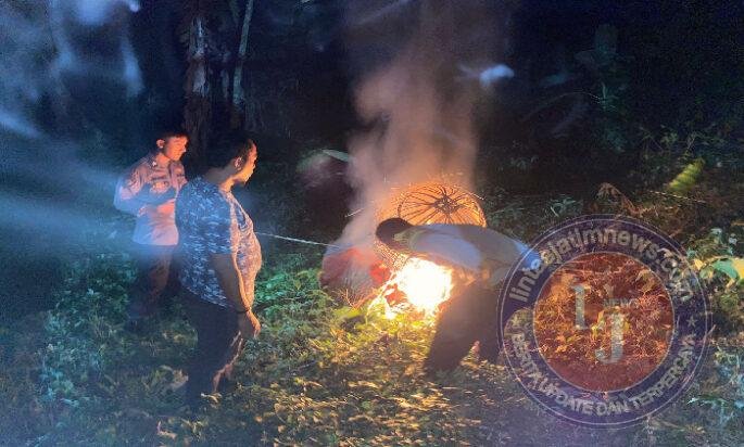 Selanjutnya, petugas langsung melakukan pembongkaran dan pembakaran sarana tersebut.