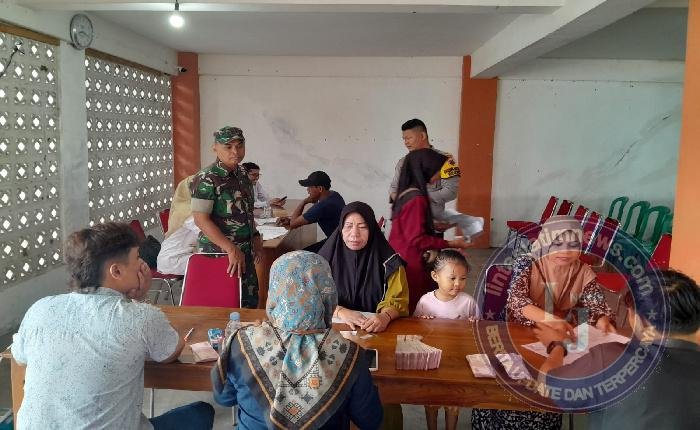 SRAGEN lintasjatimnews – Serka Sumanto bersama 1 anggota koramil 15/Gemolong Kodim 0725/Sragen, mendampingi penyaluran bantuan langsung tunai dana desa (BLT-DD) bagi warga kurang mampu di Kantor Kecamatan Gemolong, Jum’at (09/01/2026).
