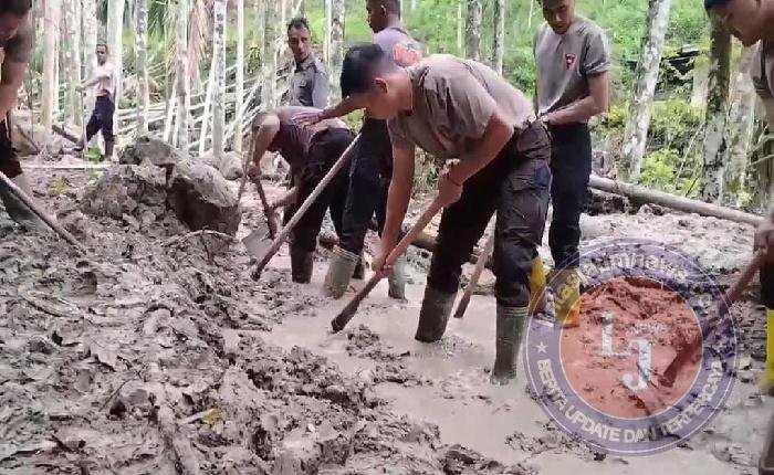 Di Tengah Lumpur dan Harapan, Polri Bersama Warga Buka Akses Jalan Kampung Setie Pascabencana