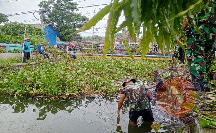 Enceng gondok yang selama ini menutup dan menyumbat aliran air menjadi perhatian serius, mengingat curah hujan yang meningkat berpotensi menimbulkan genangan bahkan banjir. Dengan menggunakan peralatan sederhana, anggota TNI, Polri, aparatur pemerintah, dan warga bahu-membahu mengangkat enceng gondok dari saluran air agar aliran kembali lancar.