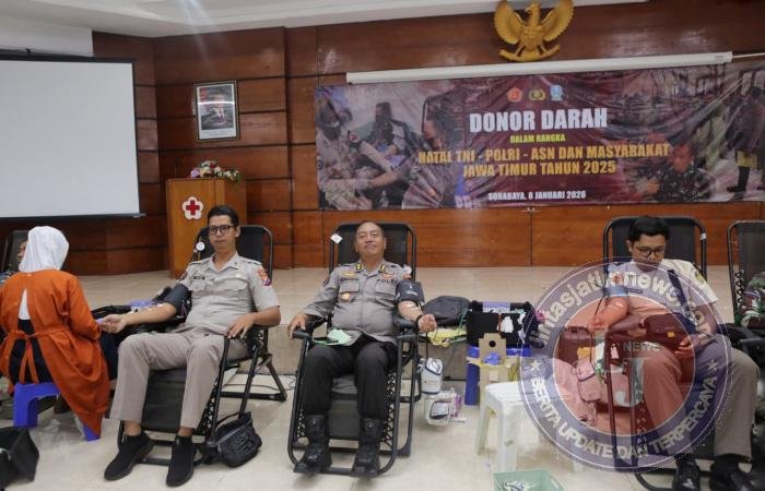 SURABAYA lintasjatimnews.com – Panitia Natal TNI dan Polri menggelar kegiatan Bakti Sosial donor darah yang dilaksanakan di Kantor PMI Cabang Surabaya, Jalan Embong Ploso No. 7–15, Surabaya, Kamis (8/1/2026).