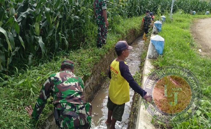 Anggota Kodim Ponorogo Kerja Bakti Bersihkan Saluran Air Bersama warga