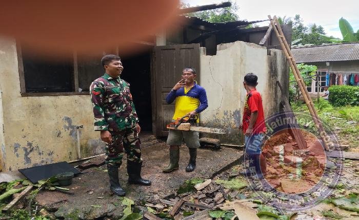 “Kami mendatangi TKP untuk membantu meninyingkirkan pohon tumbang yang menimpa rumah bapak Miswadi tersebut dengan bergotong royong, “kata Babinsa.