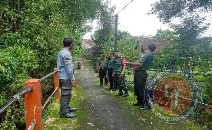 SURAKARTA lintasjatimnews – Danramil 04/Jebres Kodim 0735/Surakarta Kapten Cba Kurdi, bersama dengan Serka Aswan selaku Babinsa Kelurahan Mojosongo mendampingi tim dari Zibang yakni Peltu Daryono dalam kegiatan survei rencana Pembangunan jembatan biru Kalianyar Rt 03 Rw 29 dan Jembatan Kali Kebo Rt 03 Rw 39 Kelurahan Mojosongo, Kecamatan Jebres, Senin (12/01/2026).