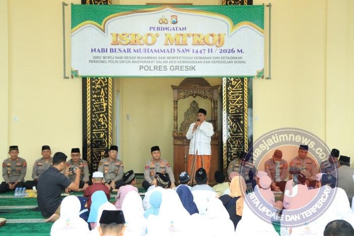 GRESIK lintasjatimnews.com – Kepolisian Resor (Polres) Gresik menggelar kegiatan Pembinaan Rohani dan Mental (Binrohtal) dalam rangka memperingati Isra Mi’raj Nabi Besar Muhammad SAW 1447 Hijriyah, Kamis (15/1/2026).