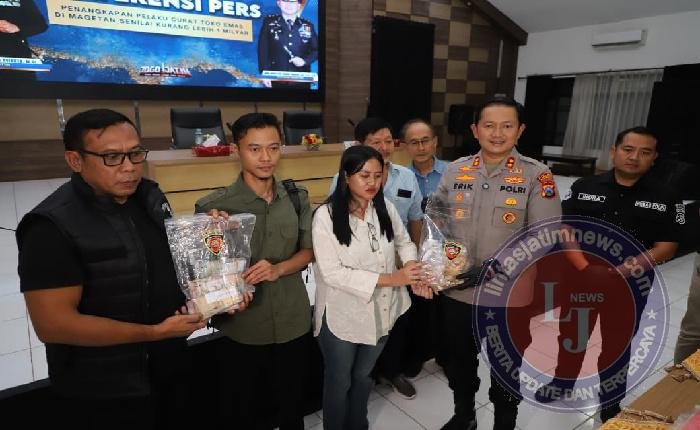 MAGETAN lintasjatimnews – Kurang dari 24 jam, jajaran kepolisian Resor Magetan Polda Jatim berhasil mengungkap dan mengamankan terduga pelaku pembobolan toko emas yang terjadi di wilayah Kecamatan Bendo, Kabupaten Magetan.