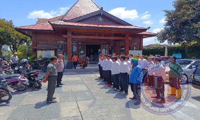 Serka E lau we selaku Babinsa jagalan bersama Bhabinkamtibmas mengambil apel pagi dan memberikan materi PBB kepada saberling kelurahan jagalan”