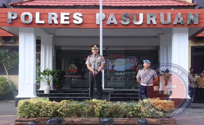 Apel yang dimulai pukul 08.00 WIB tersebut diikuti oleh Wakapolres Pasuruan Kompol Andi Purnomo, S.H., M.H., para Pejabat Utama (PJU), serta seluruh personel Polres Pasuruan.