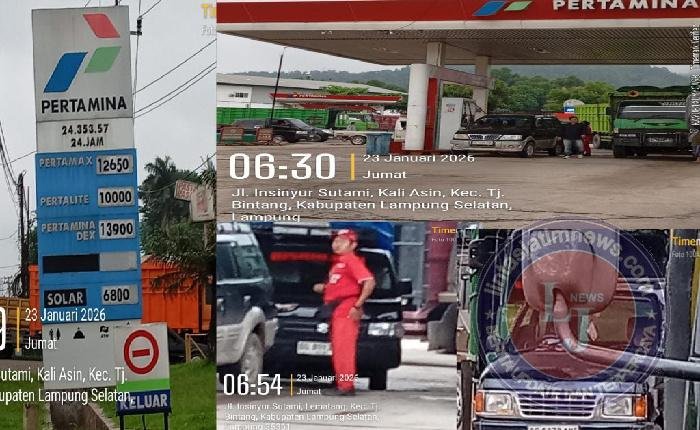 LAMPUNG lintasjatimnews – Aktivitas pengecoran bahan bakar minyak (BBM) bersubsidi jenis solar dan pertalite diduga masih berlangsung di SPBU nomor 24.353.57 yang berlokasi di Jalan Insinyur Sutami, Desa Kali Asin, Kecamatan Tanjung Bintang, Kabupaten Lampung Selatan.( 23/1/2026).