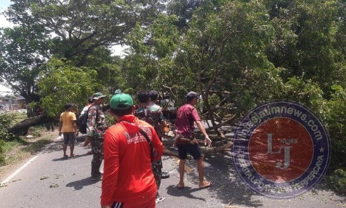TRENGGALEK lintasjatimnews – Angin kencang yang melanda wilayah Kabupaten Trenggalek menyebabkan sebuah pohon trembesi berukuran besar tumbang dan menutup total Jalan Nasional Durenan–Trenggalek. Peristiwa tersebut terjadi di RT 01 RW 01 Desa Pandean, Kecamatan Durenan, Kabupaten Trenggalek, Sabtu (24/1/2026).