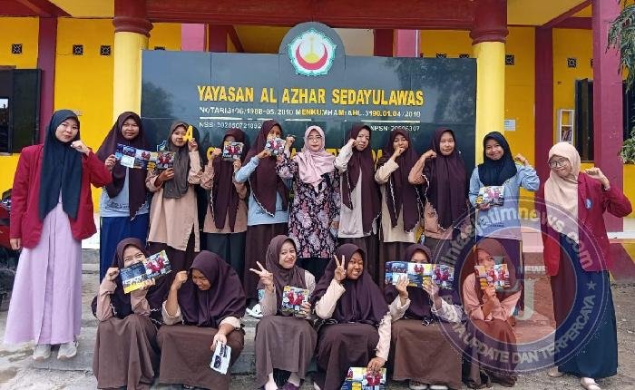 Wakil Ketua I STITM Paciran, Maftuhah, M.Pd., bersama dua mahasiswa STITM Paciran, yakni Rihmatul Ummah dan Yunita. Kehadiran rombongan STITM Paciran disambut hangat oleh civitas akademika SMA IT Al Azhar Sedayulawas serta para siswa yang mengikuti kegiatan dengan penuh antusias.