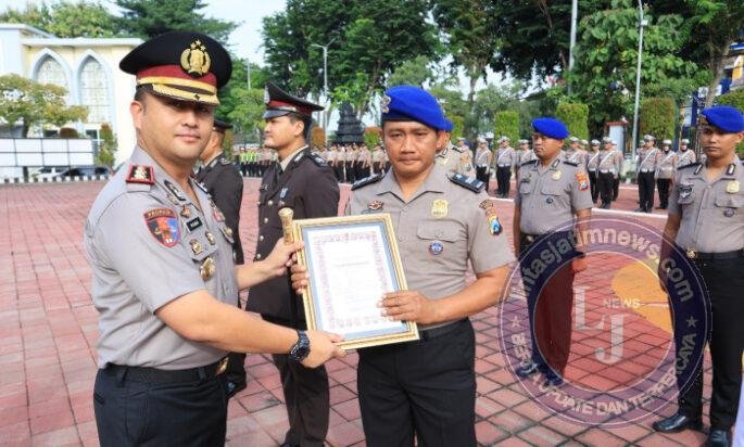GRESIK lintasjatimnews.com – Kepolisian Resor (Polres) Gresik menggelar upacara pemberian penghargaan serta penyerahan tanda kehormatan kepada personel berprestasi di halaman Mapolres Gresik, Senin (26/1/2026) pagi.