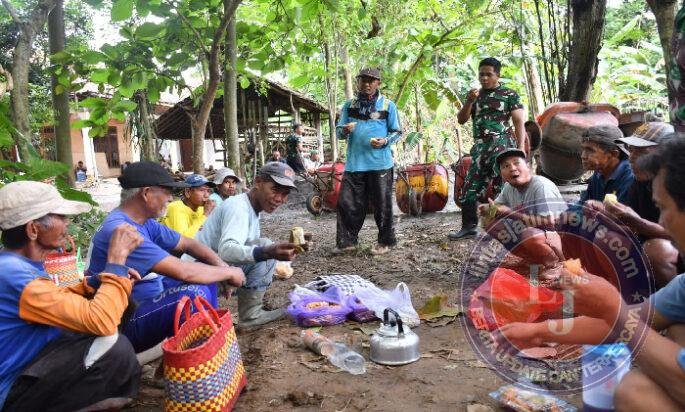 “ Kula maringi gorengan kalih inuman, amargi remen wonten bantuanipun pak ABRI ndamel dalan utawi jembatan wonten Jalen kidul mriki, masyarakat remen sanget. ( Saya memberi kue gorengan serta minuman ini, karena senang ada bantuan dari Pak ABRI (sekarang TNI) yang sedang membangun jalan atau jembatan di Desa Jalen Selatan ini), “ ucap Bapak Ladimin yang ternyata kesehariannya bekerja sebagai petani.