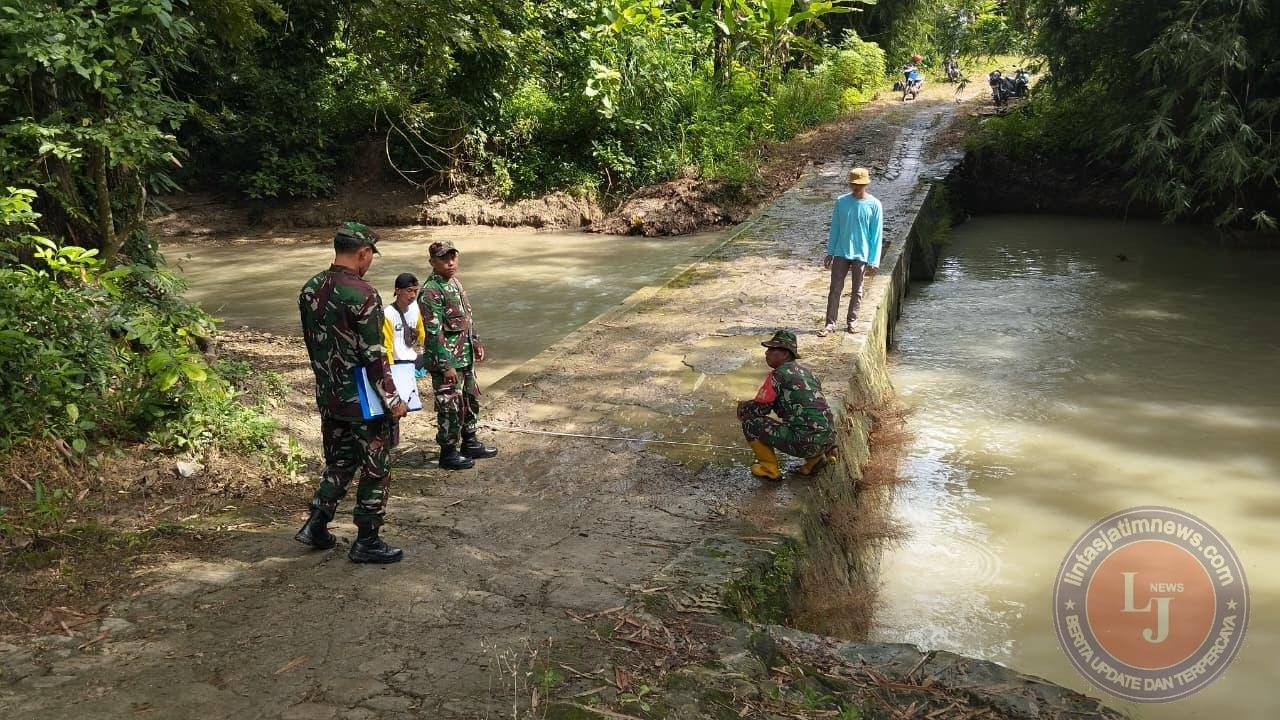 Dalam kegiatan tersebut, Sertu Heri turun langsung ke lokasi jembatan untuk mengecek kondisi fisik bangunan, mulai dari tiang penyangga, badan jembatan, hingga aliran air di bawahnya. Selain itu, Ia juga melakukan pengukuran lebar dan ketinggian jembatan serta memperhatikan kondisi tanah di sekitar yang berpotensi tergerus akibat derasnya aliran air saat hujan.