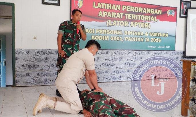 PACITAN lintasjatimnews – Komando Distrik Militer (Kodim) 0801/Pacitan melaksanakan Latihan Perorangan Aparat Teritorial (Lator Apter) Tahun Anggaran 2026 sebagai upaya meningkatkan kemampuan dan profesionalisme prajurit teritorial dalam menjalankan tugas pembinaan wilayah.