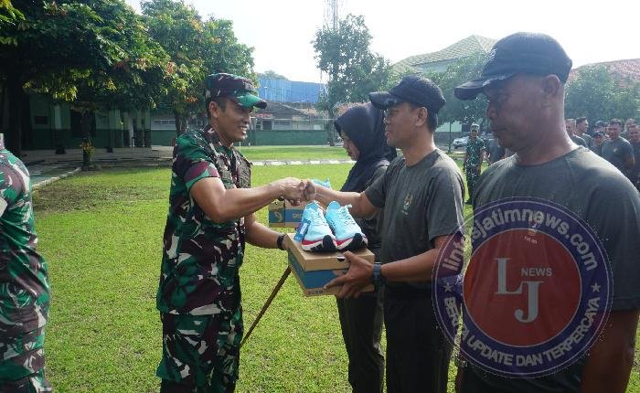 SURAKARTA lintasjatimnews – Dandim 0735/Surakarta Letkol Inf Arief Handoko Usman, S.H., membagikan Sepatu Aerobik dan kaos kaki kepada seluruh Anggota baik Militer maupun ASN.