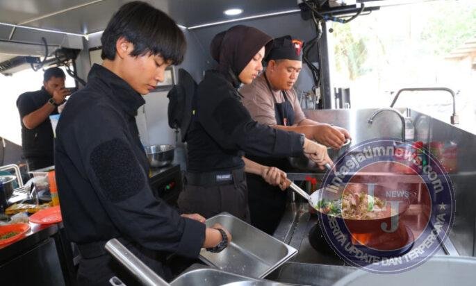 Taruna Tingkat III Akademi Kepolisian, Intan Gustava Rongrean, menyampaikan bahwa dapur lapangan tersebut menyiapkan berbagai menu makanan bergizi untuk masyarakat.