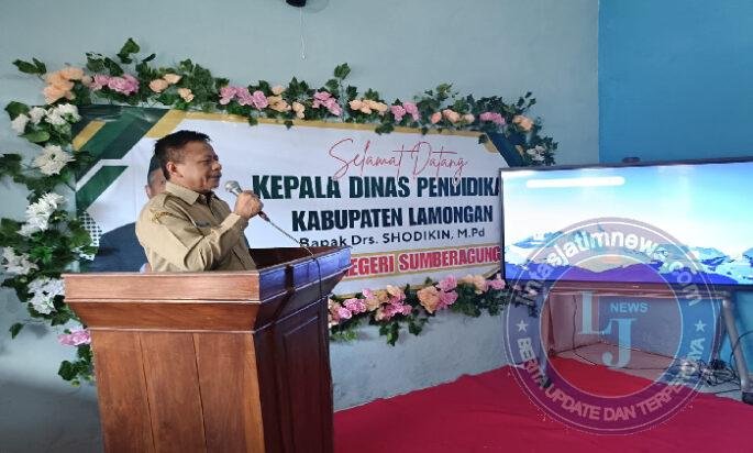 Dalam sambutannya, Kepala SDN Sumberagung Kecamatan Mantup, Umaiyah, S.Pd., M.Pd, menyampaikan rasa terima kasih atas kehadiran Kepala Dinas Pendidikan Kabupaten Lamongan.