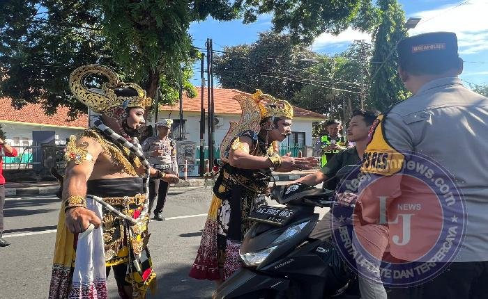 Kehadiran keduanya bukan bagian dari pertunjukan seni, melainkan simbol kampanye keselamatan dalam Operasi Keselamatan Semeru 2026 yang digelar Polres Blitar Kota Polda Jatim.