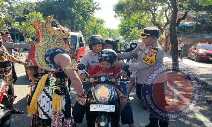 Satlantas Polres Blitar Kota Polda Jatim punya cara unik menyosialisasikan operasi keselamatan Semeru 2026.