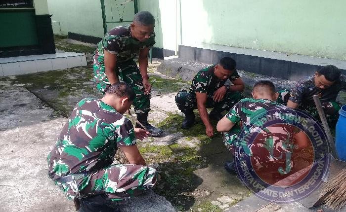 “Dengan adanya pembersihan ini maka lingkungan menjadi bersih, karena apabila lingkungan bersih kerjapun menjadi semakin nyaman dan dapat mewujudkan keasrian di lingkungan kantor Koramil.”tuturnya.