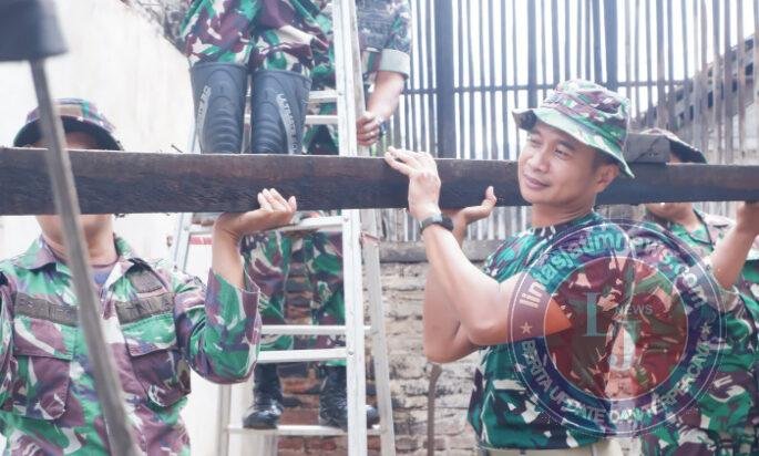 PACITAN lintasjatimnews.com – Ratusan prajurit Kodim 0801/Pacitan dipimpin Kasdim 0801/Pacitan Mayor Inf Muhajir melakukan pembersihan dan merapihkan puing puing bangunan yang berserakan terdampak gempa bumi di rumah warga, Kelurahan Sidoharjo, Kec./Kab. Pacitan, Sabtu (7/2/2026).