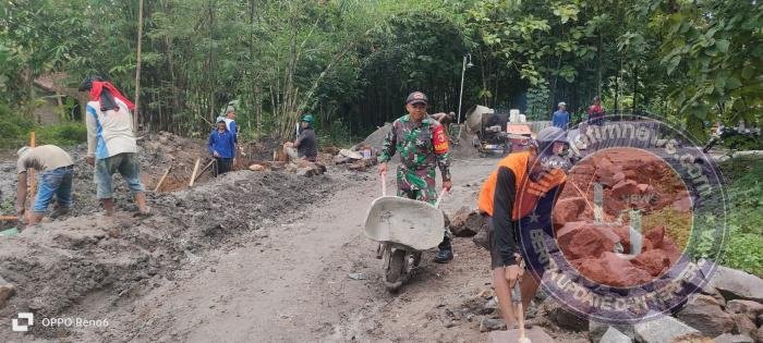 MADIUN lintasjatimnews.com — Babinsa Desa Ngale Koramil 0803/10 Pilangkenceng Serka Agus Supriyanto bersama warga masyarakat melaksanakan kegiatan kerja bakti pembuatan talud di Kasun 2, Dusun Sumbang, Desa Ngale, Kecamatan Pilangkenceng, Kabupaten Madiun.