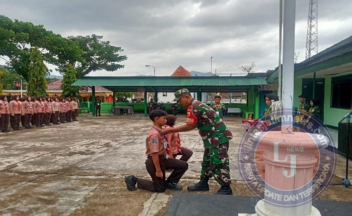 Serma Danang Pimpin Upacara Pengambilan Badge Saka Wira Kartika 19 Di Halaman Koramil 0801/07 Ngadirojo