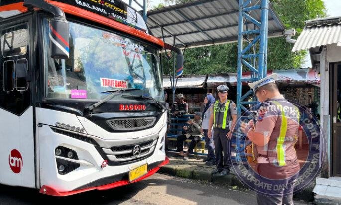Upaya menekan Kecelakaan Satlantas Polres Pasuruan Gelar Ramp Check Angkutan Umum di Terminal Pandaan