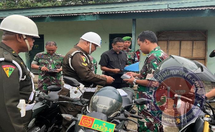 PACITAN lintasjatimnews – Guna mencegah terjadinya pelanggaran lalu lintas dan meningkatkan disiplin pengguna kendaraan dinas khususnya roda dua dan roda empat, Sub Detasemen Polisi Militer (Sub Denpom) V/1-4 Pacitan melakukan pemeriksaan kelengkapan kendaraan dinas bermotor bertempat dilapangan parkir Makodim 0801/Pacitan, Jln. Letjend Suprapto No.42, Barean, Desa/Kel. Sidoharjo, Kec./Kab. Pacitan, Selasa (10/2/2026).