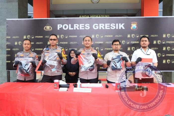Selain kasus curat, Polres Gresik juga mengungkap kasus penipuan dan penggelapan sepeda motor dengan tersangka berinisial A.A (19), seorang mahasiswa asal Jombang.