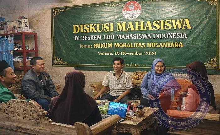 LAMPUNG lintasjatimnews – Kegiatan Diskusi mahasiswa anggota dan pengurus LBH MI (Lembaga Bantuan Hukum Mahasiswa Indonesia) dilaksanakan di Beskem LBH MI yang Berkedudukan di Lampung Selatan Selasa 10/02/2026, Diskusi ini menjadi ruang intelektual dan kritik akademik terhadap kondisi penegakan hukum nasional yang dinilai mengalami krisis moral dan menjauh dari nilai-nilai keadilan substantif.
