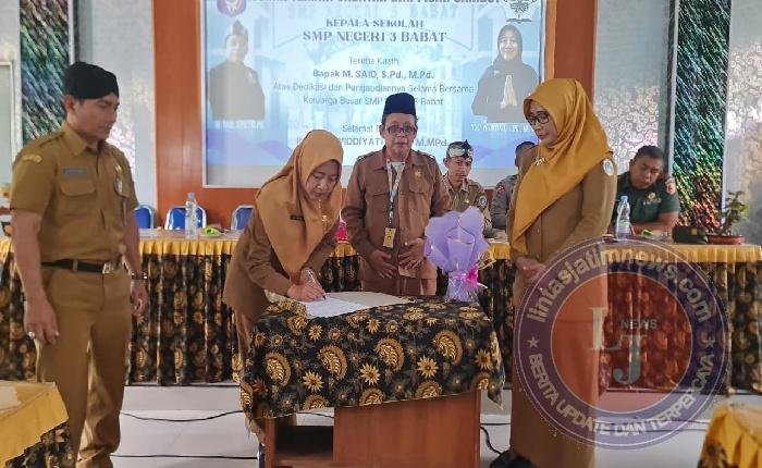 LAMONGAN lintasjatimnews – Serah Terima Jabatan (Sertijab) dan pisah kenal Kepala SMP Negeri 3 Babat digelar khidmat dan penuh kehangatan di Aula SMPN 3 Babat, Selasa (10/2/2026). Momentum pergantian kepemimpinan dari Muhammad Said, S.Pd., M.Pd. kepada Yuli Widdiyati, S.Pd., M.M.Pd. ini berlangsung dalam suasana kekeluargaan yang kental.