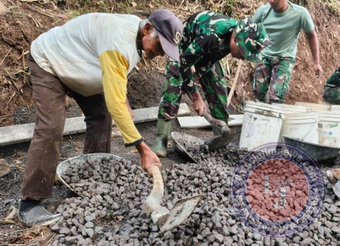 ‎Alhamdulillah biarpun cuman hanya sedikit mencangkul batu koral , saya merasa senang bisa berbaur bersama-sama TNI,”pungkas Mbah Kasidi.