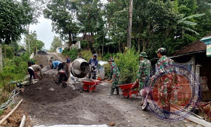 WONOGIRI lintasjatimnews.com – Adukan material terus dibutuhkan dan dibuat menggunakan mesin molen secara bergotong royong antara warga dan anggota Satgas TNI Manunggal Membangun Desa (TMMD) Reguler ke-127 Kodim 0728/Wonogiri.