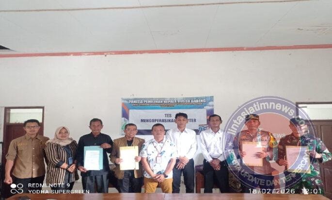 PACITAN lintasjatimnews – Dorong perkembangan era digital, Danramil 0801/05 Nawangan Kapten Inf Agus nuriadi menghadiri ujian kompetensi pelaksanaan dan seleksi penjaringan ujian praktek komputer calon perangkat Desa Gondang, bertempat di balai Desa Gondang, Kecamatan Nawangan, Kabupaten Pacitan. Rabu (18/2/2026).
