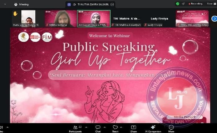 SURABAYA lintasjatimnews – Komunitas Suara Kita berkolaborasi bersama FIM News (Forum Indonesia Muda) dan FIM Surabaya sukses menyelenggarakan Webinar Public Speaking bertajuk “Seni Bersuara: Merangkai Kata, Mengungkap Cerita” pada Minggu (15/02/2026) melalui Zoom Meeting.