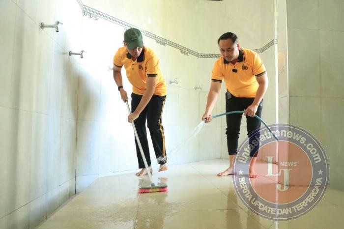 Arahan tersebut disambut antusias oleh anggota yang langsung bergerak sesuai ploting tugas masing-masing. Suasana kebersamaan tampak jelas saat personel bahu-membahu menyapu halaman, mengepel lantai, membersihkan kaca, hingga merapikan fasilitas umum demi memastikan lingkungan tempat ibadah tetap terjaga kebersihannya.