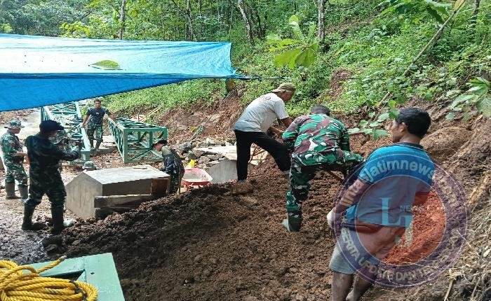 Pembangunan jembatan tersebut dilaksanakan oleh tim konstruksi Kodim 0801/Pacitan bersama warga setempat. Meski dalam situasi puasa, proses pengerjaan tetap berlangsung dengan penuh semangat.