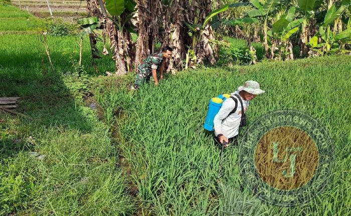 Babinsa Kodim Ponorogo Bantu Petani Semprot Hama Tanaman Padi