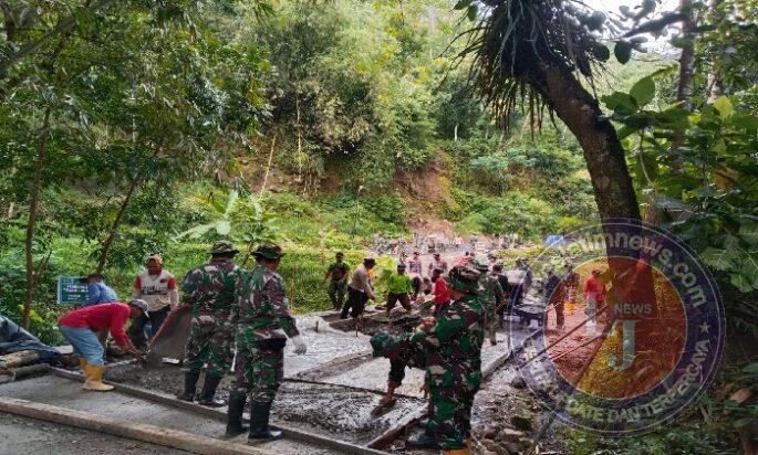 “Dengan suasana hari Minggu yang merupakan hari libur ditambah cuaca yang cukup dingin di lereng kaki Lawu, anggota Satgas TNI,Polri dan masyarakat tampak bersemangat menyelesaikan pengerjaan pengecoran jalan,” katanya.