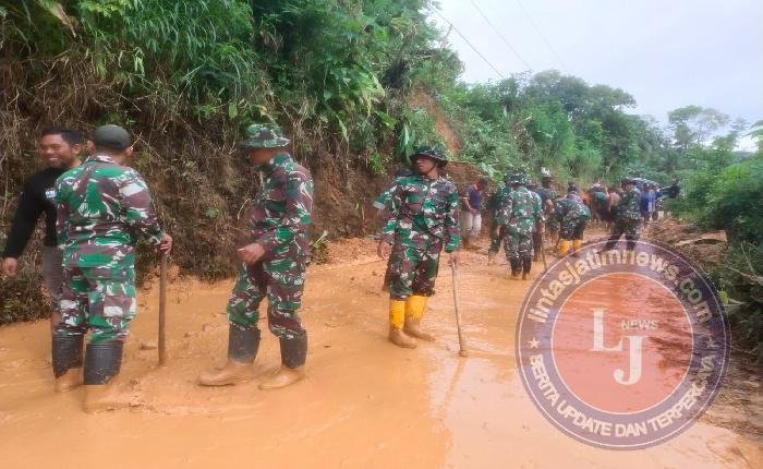 Jalan Tertimbun Longsor, Anggota Kodim Ponorogo dan Rakyat Gerak Cepat Atasi