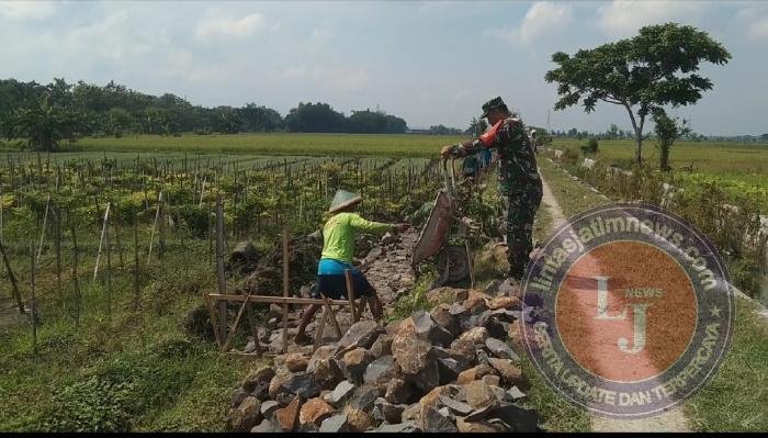 Demi Sawah Cukup Air, Babinsa dan Petani Kenongorejo Bangun Irigasi Bersama