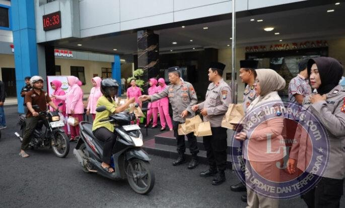 TULUNGAGUNG lintasjatimnews.com – Polres Tulungagung Polda Jatim bersama Bhayangkari Cabang Tulungagung melaksanakan kegiatan pembagian takjil kepada pengguna jalan.