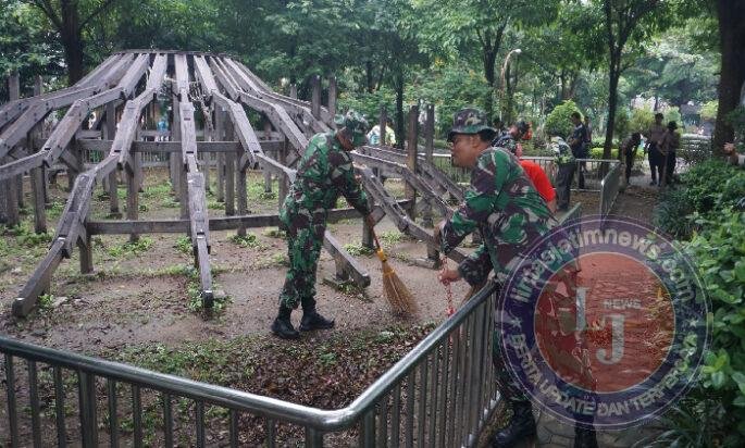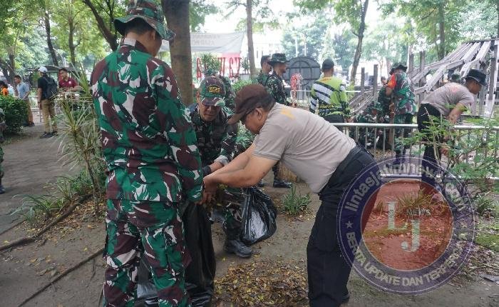 Kerja bakti bersama yang difokuskan dengan pembersihan titik-titik tumpukan sampah liar ini melibatkan personel gabungan TNI-Polri, Forkopimcam, pemerintah desa dan elemen masyarakat. Mereka bahu-membahu, bergotong-royong membersihkan daun yang jatuh dan tumpukan sampah yang dijadikan tempat pembuangan sampah ilegal.