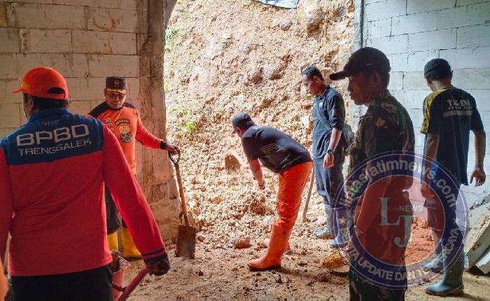Merespons kejadian itu, unsur TNI dari Koramil 0806-11/Panggul bersama tim gabungan segera turun ke lokasi pada Sabtu (28/2/2026) pagi. Bati Wanwil Koramil 0806-11/Panggul Serma Suhardjo bersama anggota Badan Penanggulangan Bencana Daerah (BPBD) Kecamatan Panggul serta relawan Kampung Siaga Bencana (KSB) melakukan kerja bakti membersihkan material tanah yang menutup area dapur rumah korban.