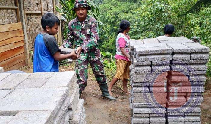 Kehadirannya pun menjadi penyemangat tersendiri bagi anggota satgas yang tengah melaksanakan pembangunan rumah tidak layak huni (RTLH) milik orang tuanya. Sabtu (28/2/2026).